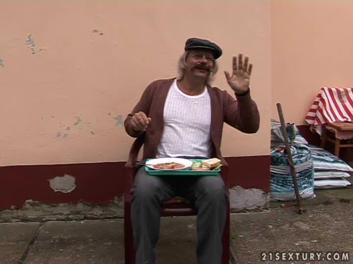 This old yokel is living an easy life: a little soup, some work in his own garden - and an occassional visit of the town's biggest teen whore! Somehow the kinky girl is really attached to him, which he doesn't mind. Especially when he can push his vintage wiener deep into her juicy fresh slit!
